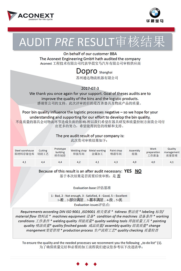 宝马供应商审核证书
